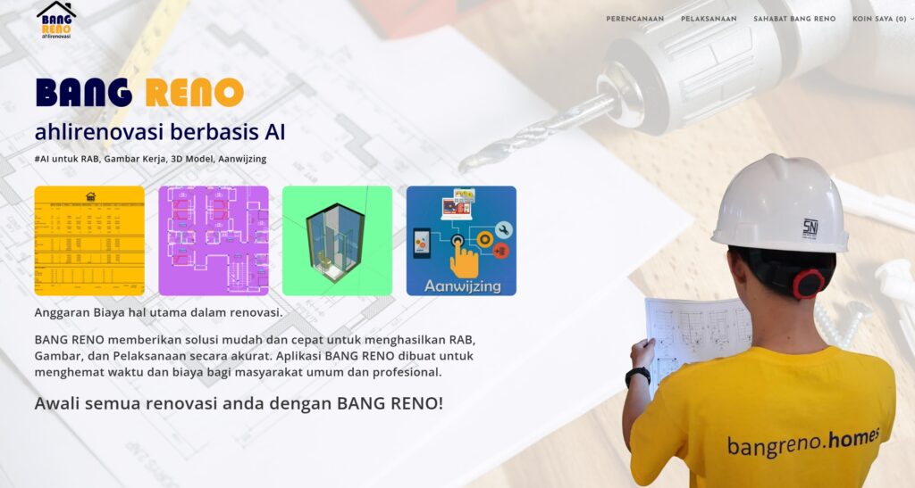 Aplikasi penerapan Artificial Intellegence pertama di Indonesia Bang Reno adalah aplikasi yang menghasilkan RAB, Gambar Kerja dan 3D modelling Perkembangan Artificial Intellegence saat ini sudah